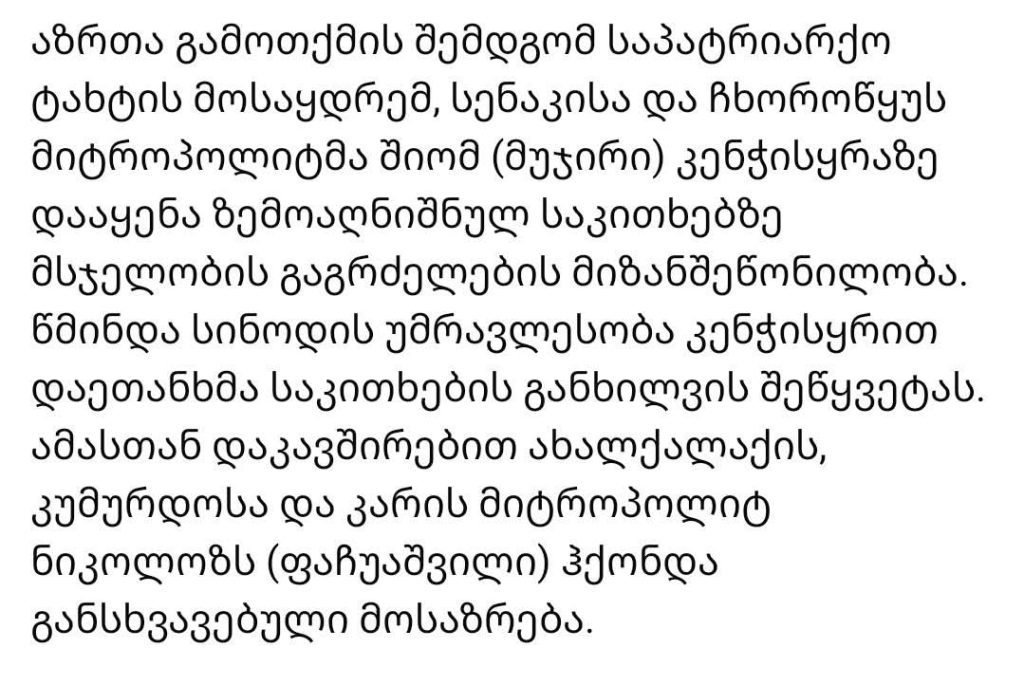 სინოდის განჩინების მიხედვით დაპირებულ კენჭისყრაზე არ დააყენეს განათლების და ასაკის საკითხი. ეს არის მიტაცებული არჩევნები, არასამართლიანი და არალეგიტიმური.