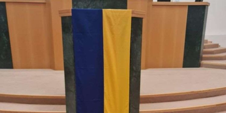 „ქართული ოცნების“ საპარლამენტო უმრავლესობამ პარლამენტის სხდომათა დარბაზში, მომხსენებლის ტრიბუნაზე უკრაინის დროშა გადმოფინა.