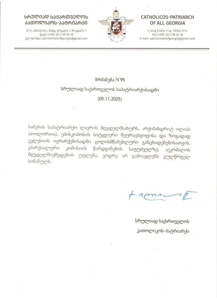 საპატრიარქო დადგენილებას აქვეყნებს და ოფიციალურად აცხადებს, რომ მამა ილია თოლორაიას მღვდელმოქმედების უფლება შეუჩერა: