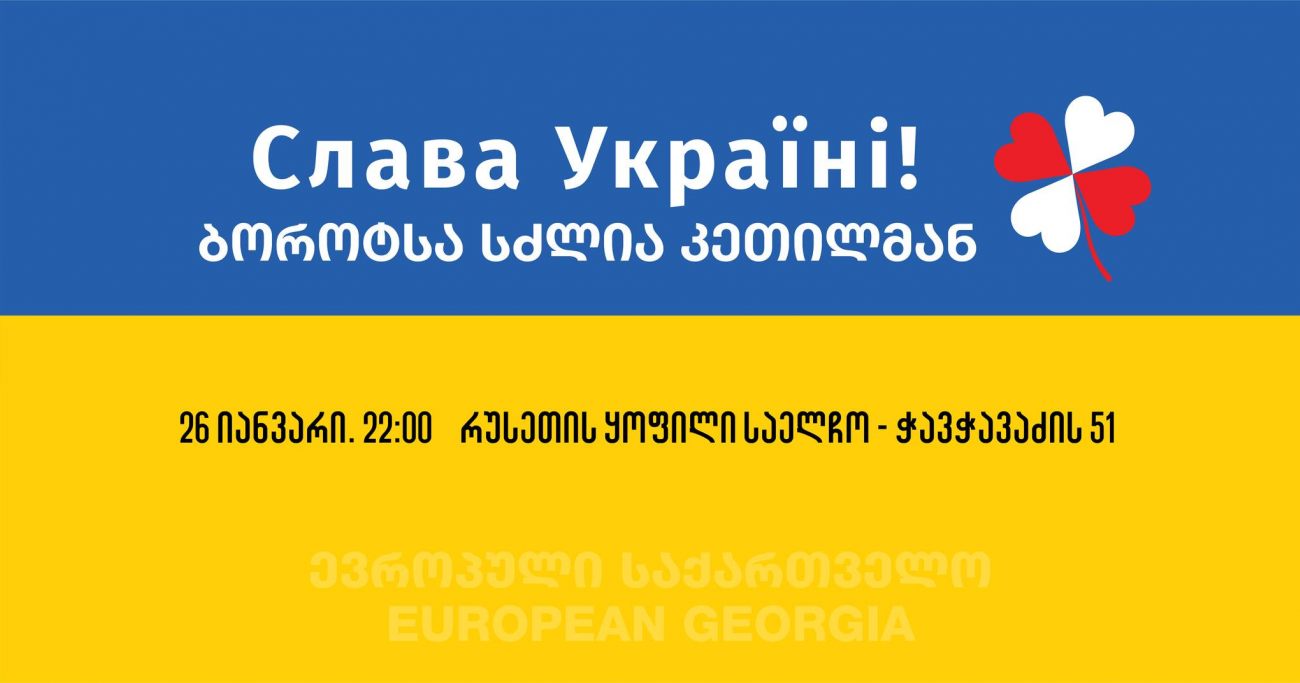 “საჭიროა, ვუპასუხოთ ცინიზმს”. – ევროპული საქართველოს წევრები და მხარდამჭერები 26 იანვარს, 22:00 საათზე რუსეთის ყოფილ საელჩოსთან უკრაინის მხარდამჭერ აქციას გამართავენ.