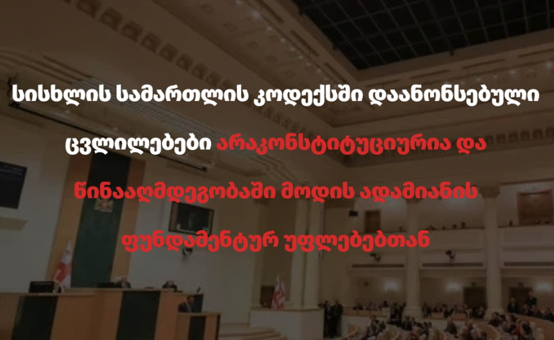 „ქართული ოცნების“ მიერ არჩეული საკანონმდებლო გზა მკაფიოდ მიუთითებს მათი მხრიდან სისხლის სამართლის კანონმდებლობის ბოროტად გამოყენებისა და პოლიტიზაციის სურვილს და განსხვავებული პოლიტიკური შეხედულებების მქონე პირების თვითნებურად დასჯის მაღალ რისკებს ქმნის.