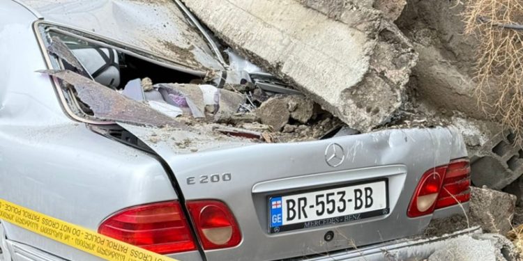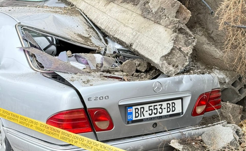 სოფელ დიღომში საცხოვრებელი კორპუსის კედელი ჩამოინგრა და მანქანა მოიყოლა