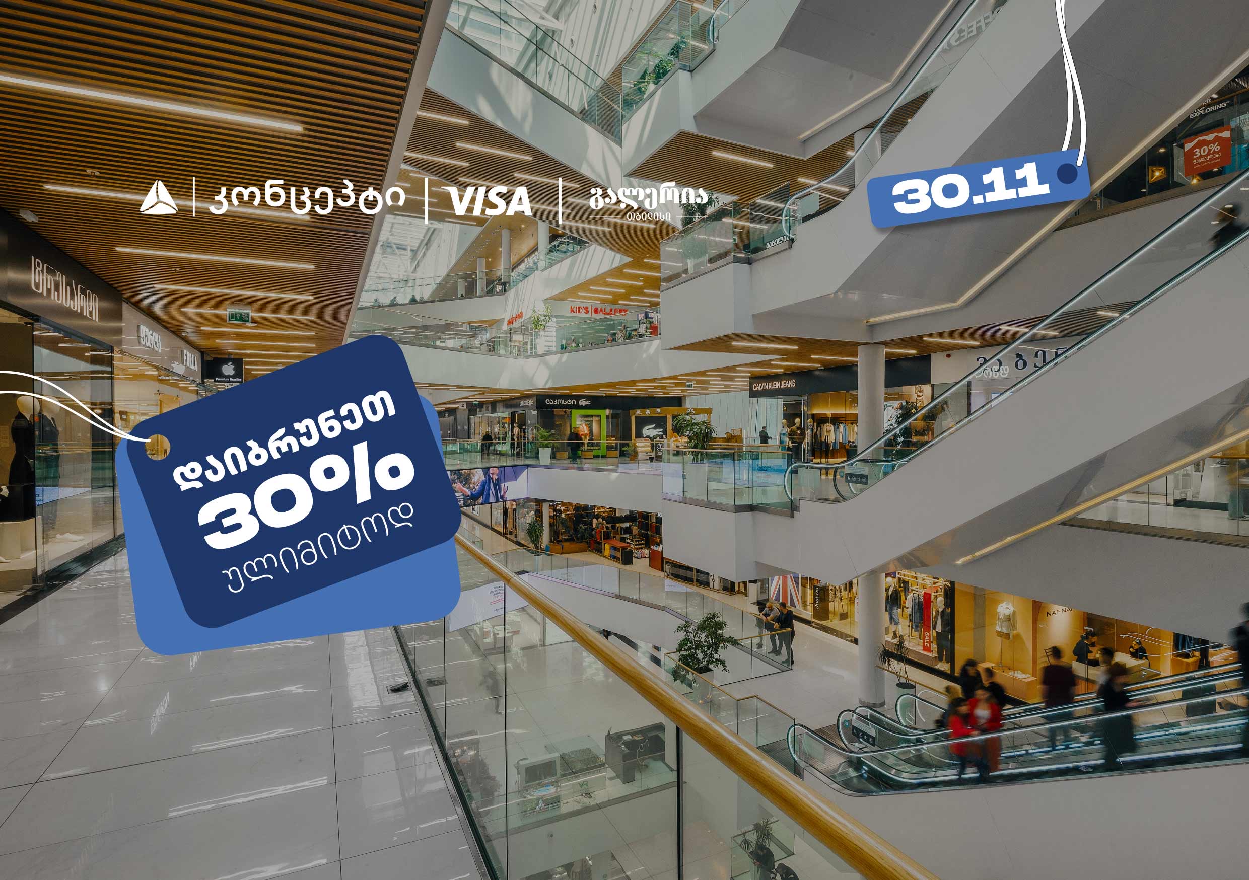 თიბისი კონცეპტმა მომხმარებლებს წელსაც ხანგრძლივი Black Friday შესთავაზა. სამდღიანი შეთავაზებების ბოლო დღეს, მხოლოდ 30 ნოემბერს, გალერია თბილისის დაბადების დღეზე, შერჩეულ ობიექტებში, თიბისი კონცეპტის Visa ბარათით გადახდისას, 30% -ს ულიმიტოდ დაიბრუნებენ