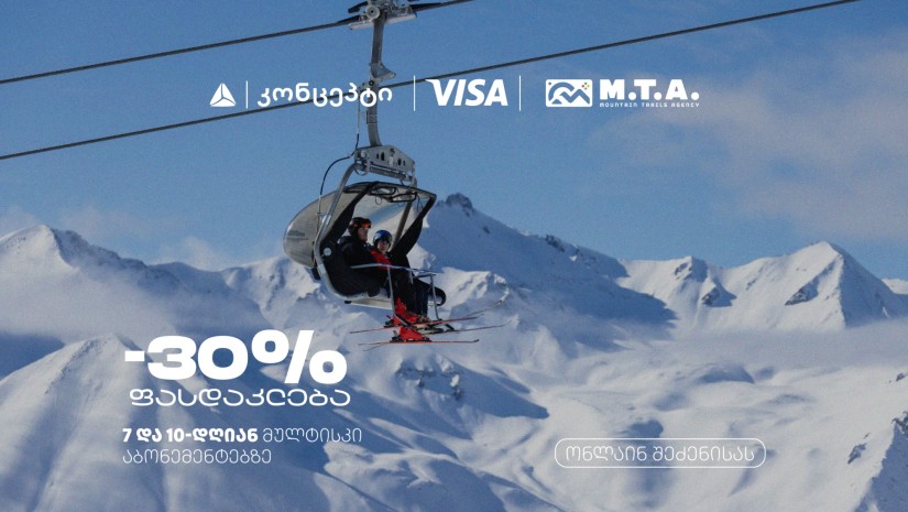 თიბისი კონცეპტის, Visa-ს და M.T.A-ს შეთავაზებების ფარგლებში, სათხილამურო სპორტის მოყვარულები შერჩეულ ონლაინ პლატფორმებზე ოთხივე კურორტის 7 და 10-დღიანი მულტისკი სეზონური აბონემენტების თიბისი კონცეპტ Visa ბარათებით შეძენისას, 30%-იანი ფასდაკლებით ისარგებლებენ.