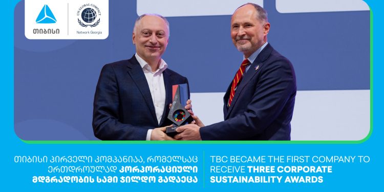 თიბისის, გაეროს გლობალური შეთანხმების ყოველწლიურ დაჯილდოებაზე „კორპორაციული მდგრადობის ჯილდო 2025 – ბიზნესი მდგრადი განვითარებისთვის“, ჯილდო სამ ნომინაციაში გადაეცა. თიბისი პირველი კომპანია გახდა, რომელმაც ამ დაჯილდოებაზე ერთდროულად 3 ჯილდოს მოპოვება შეძლო.