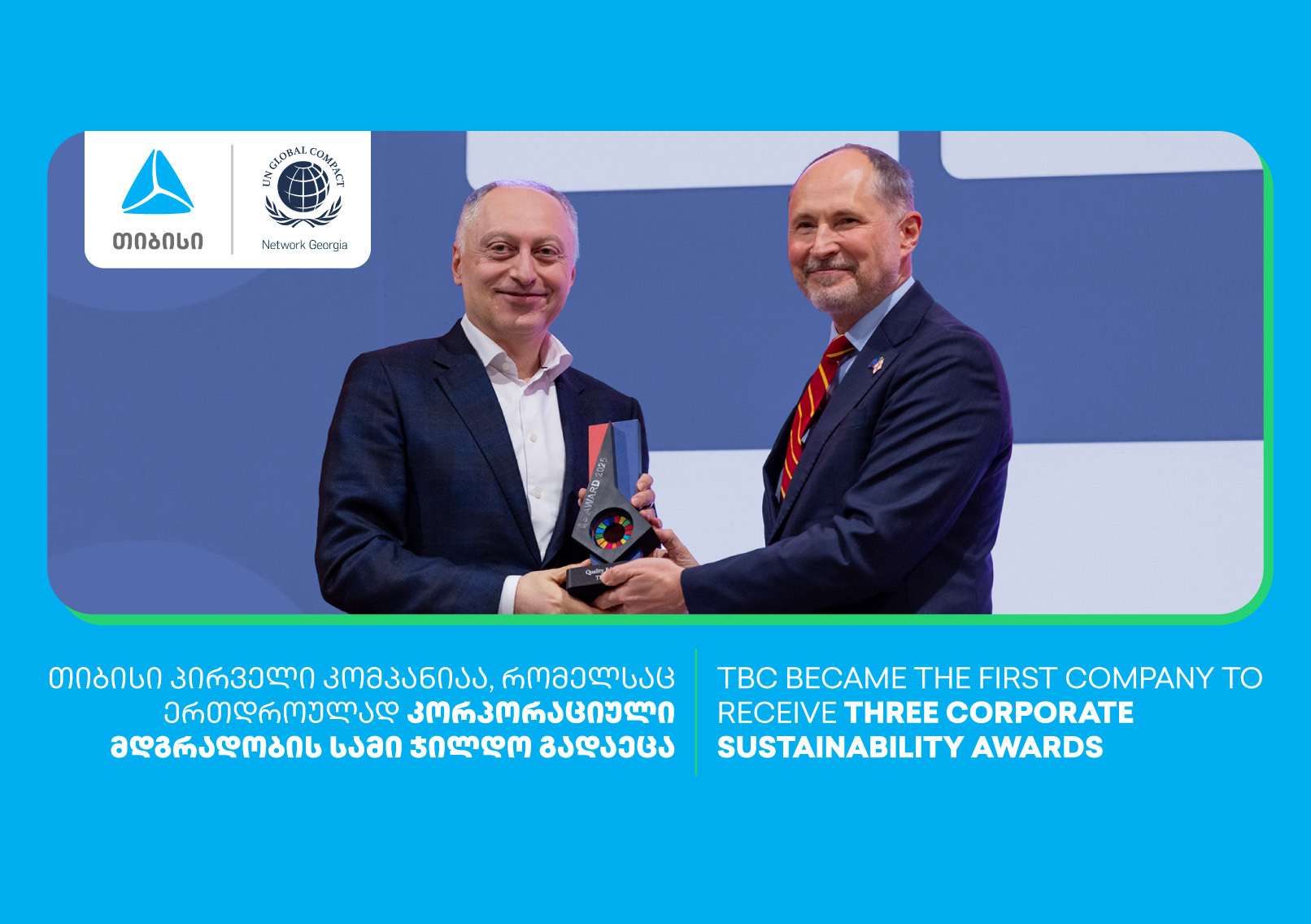 თიბისის, გაეროს გლობალური შეთანხმების ყოველწლიურ დაჯილდოებაზე „კორპორაციული მდგრადობის ჯილდო 2025 – ბიზნესი მდგრადი განვითარებისთვის“, ჯილდო სამ ნომინაციაში გადაეცა. თიბისი პირველი კომპანია გახდა, რომელმაც ამ დაჯილდოებაზე ერთდროულად 3 ჯილდოს მოპოვება შეძლო.