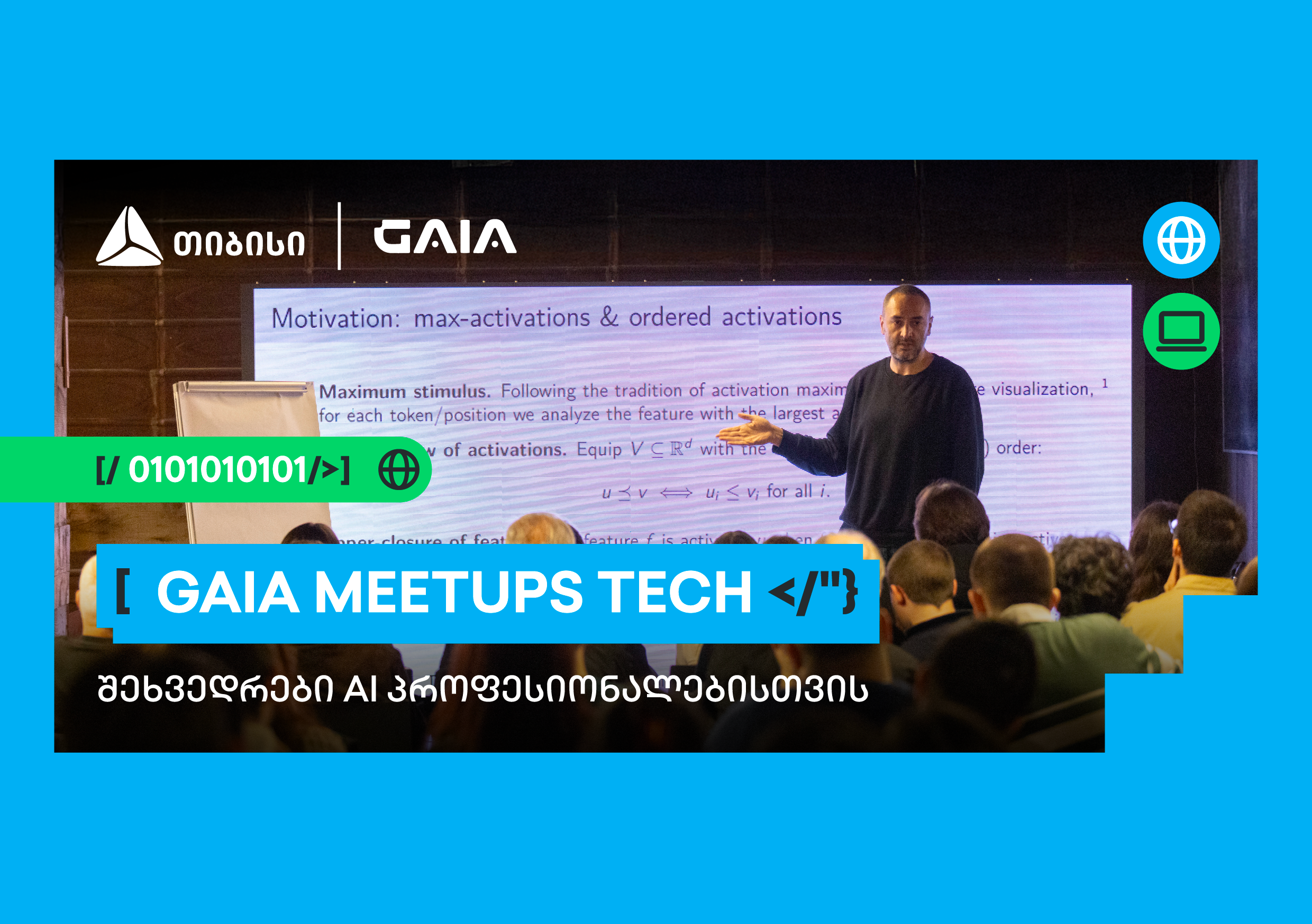 GAIA Meetups-ის შეხვედრები ყოველთვიურად ორ ფორმატში ტარდება – GAIA Meetups Tech და GAIA Meetups Horizons.
