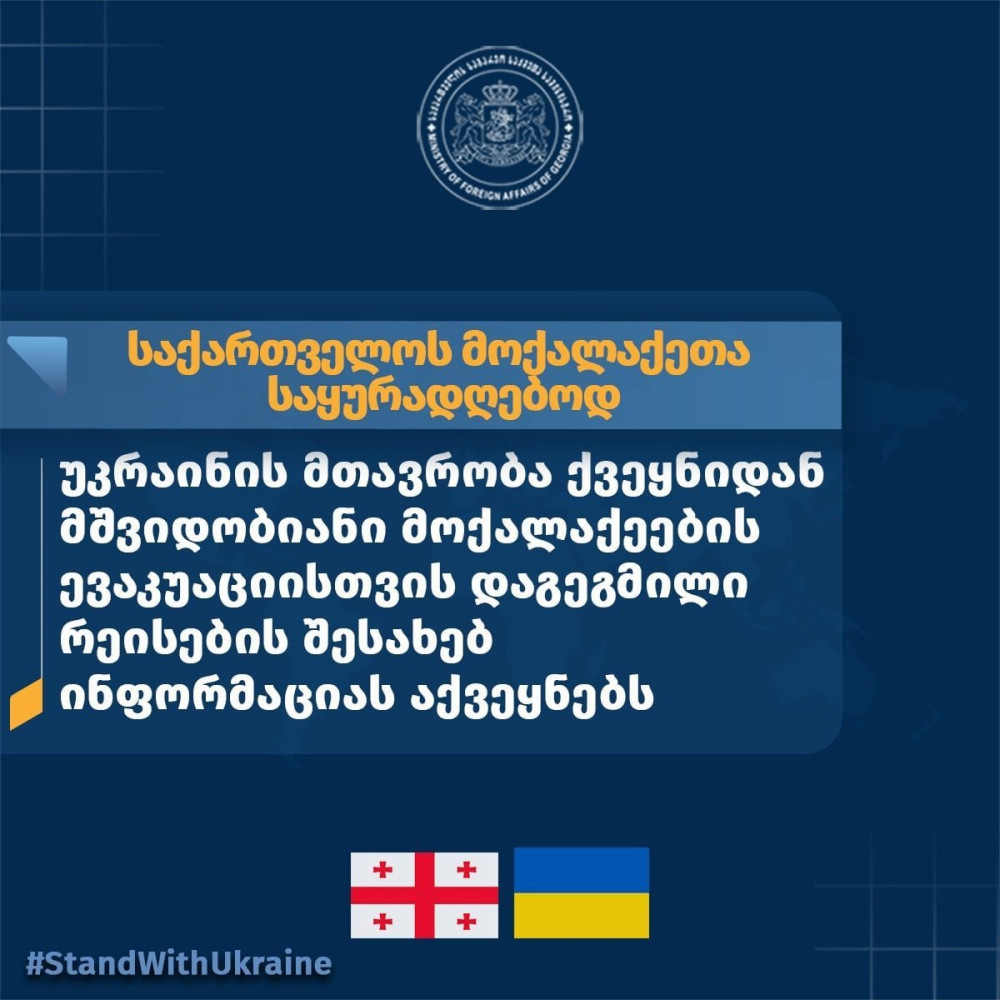უკრაინის მთავრობა ქვეყნიდან მშვიდობიანი მოქალაქეების ევაკუაციისთვის დაგეგმილი რეისების შესახებ ინფორმაციას აქვეყნებს.
