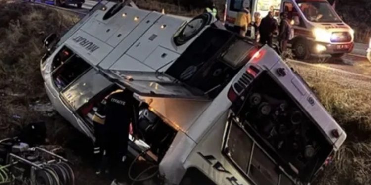 თურქეთში ავტობუსი გადაბრუნდა, შემთხვევის შედეგად ორი ადამიანი დაიღუპა, 21 კი დაშავდა.