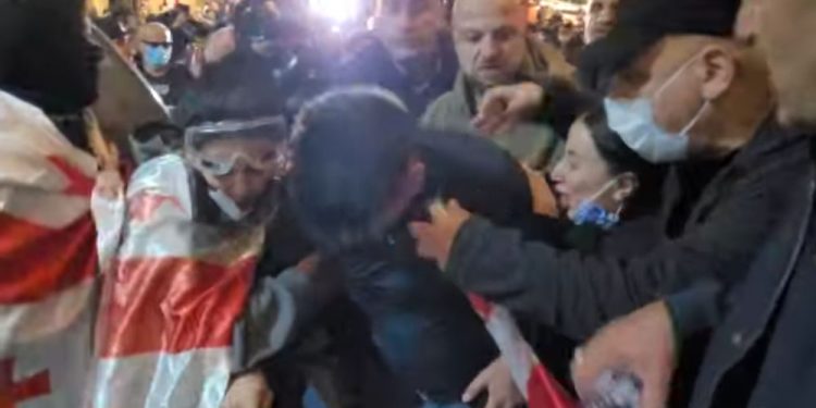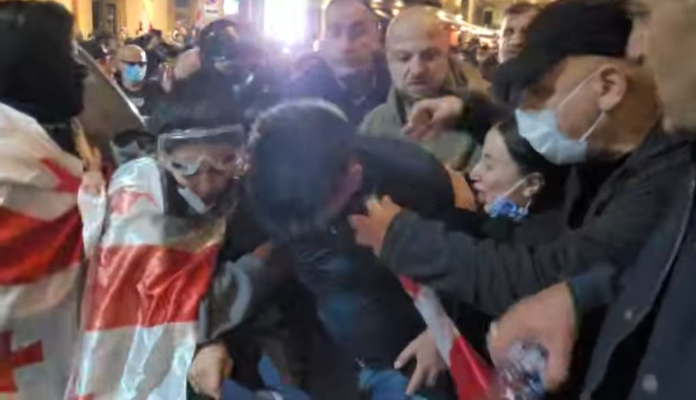 ვიდეოში ჩანს, რომ აქციის მონაწილეებმა, გამოარიდეს ისინი გაბრაზებულ ხალხს და პოლიციელები უსაფრთხო ადგილას გაიყვანეს.